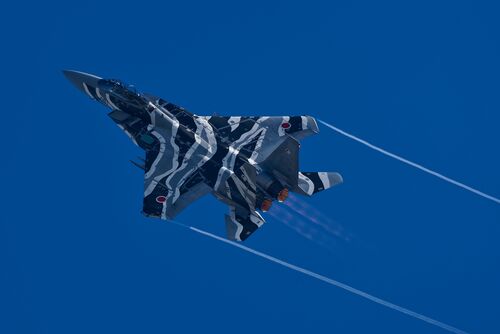 アグレッサー3機による機動飛行。 どこから進入してくるのかのか分からないので、カメラを手にしたまま周囲を警戒する。 +誰かが先に見つけてくれるかもしれないので、周囲の同業者の動向を監視。 Sony α77II 500mm F4 G SSM 2015.12.5 新田原基地外周南側 …