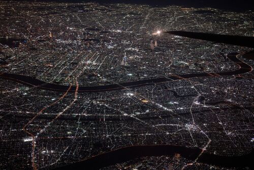 ーーーーー 大阪はもちろん霞んでいたが、上空もやや霞んでいて、さらに千歳も霞んでいた。 なのでDxOのカラーレンダリングをFuji Velvia 100に設定して、無理やりコントラストと色彩を強めに…。 下の写真の冠雪した山は恐らく白山で、左奥の平野は福井市。 …